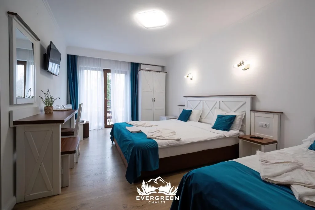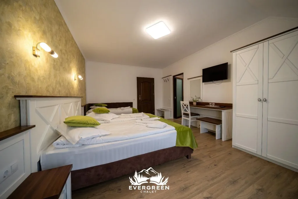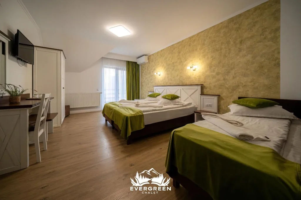 Explorează galerie foto Evergreen Chalet. Vă așteaptă în inima naturii, la poalele munților Făgăraș, oferindu-vă peisaje pitorești și un refugiu de liniște. Complexul nostru dispune de camere confortabile, un restaurant rafinat și facilități exterioare precum loc de joacă pentru copii, saună uscată și jacuzzi în aer liber. Perfect pentru relaxare și evenimente speciale, Evergreen Chalet este destinația ideală pentru o experiență de neuitat. Vă invităm să descoperiți frumusețea și confortul oferite de locația noastră!